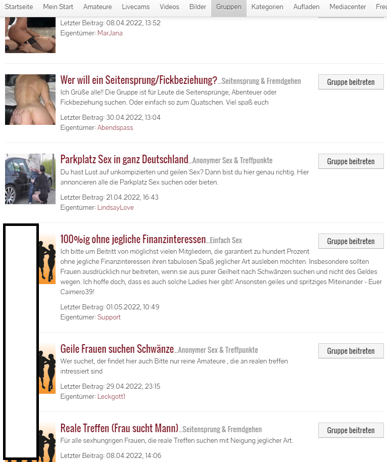Selbstverständlich können wir dir dafür auch Anschauungsmaterial liefern, denn du gehst im Dropdown-.Menü auf Gruppen, trittst so vielen du willst bei und legst dort absolut kostenfrei los - Sextreffen garantiert auch in deiner Nähe und mit Frauen ohne finanziellem Interesse.